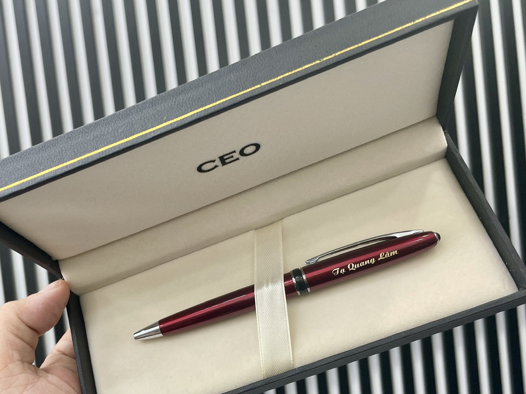 Tên thương hiệu CEO được in trên nắp bút, tăng tính cá nhân hóa cho sản phẩm.