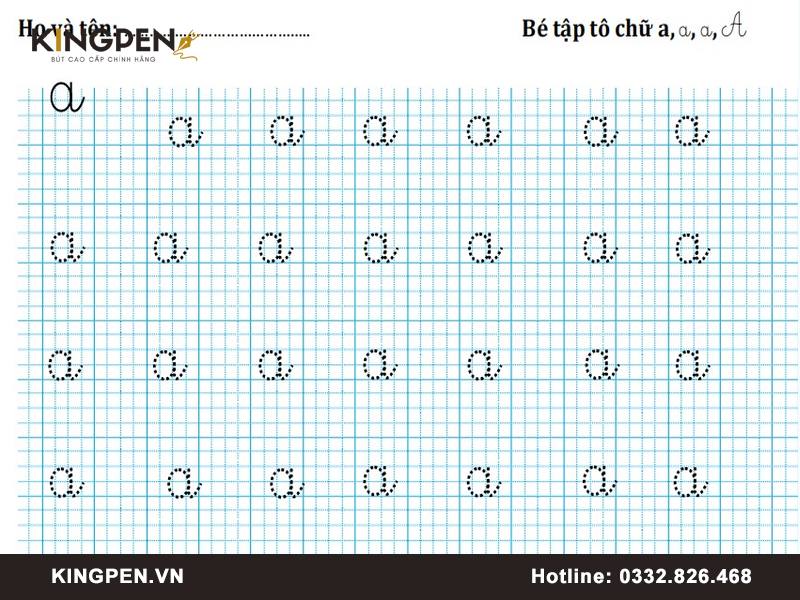 Bé tập tô chữ cái nhỏ theo từng ô ly